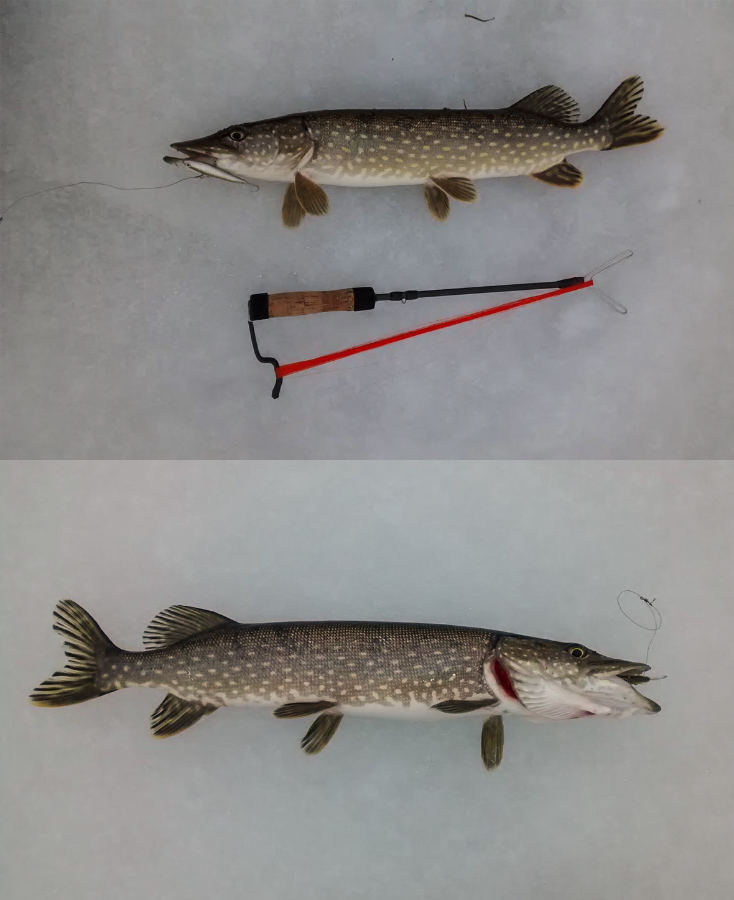 Tänään huomattiin yksi vähän tummempi alue lumessa jota lähdettiin rei'ittämään. Saatiin siitä joitain pikkuahvenia ja kaveri kirosi siihen malliin että kiloahvenhan sieltä pääsi karkuun avannossa. Kaverit paineli tummempaa railoa eteenpäin ja itse vähän hitaampana jäin kairailemaan kavereiden reikien väleihin kun tuntui että pojat rei'ittää liian harvaan. No yhdellä reiällä sain ensin oliivin vihreällä JOJO-kevennetyllä n. 150g ahvenen ja kun heiluttelin pilkkiä vielä hetken lähti pohjasta paksumpi viiva joka ottikin kiinni ja jäällä lepäsi kohta reilu puolikiloinen ahven. Näin ajattelin koska itse pidän puolikiloista ahventa jo melko suurena ja onnistuneena saaliina. Mittasin kalan kotona ja se painoi suureksi yllätykseksi jopa 670g eli kyseessä oli talven toiseksi suurin ahven. Olisi kyllä mukavaa jos noita suurempia tarttuisi pilkkeihin joskus useampia per reissu eikä yksittäisiä talven mittaan mutta hyvä näinkin.......Muuta isompaa ei sitten päivän aikana tullutkaan. Sentään eväitä syödessä nousi tasuria kohti viiva ja kun heitin juustosämpylän jäälle sain vavan ajoissa käteen ja nostin vielä huikean 280g kalan jäälle. En oikeasti tiedä tasureiden värien merkityksestä juuri mitään mutta kaverit kehuu sinistä ja vihreää ja tuo millä tänään kalaa sain on ainut vihreä joten sitä olen uittanut. Toimi viikko sitten heposelälläkin.